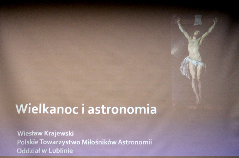 W związku ze zbliżającymi się Świętami Wielkanocnymi UTW zorganizował w dniu 4 kwietnia 2017 r. spotkanie z dr Wiesławem Krajewskim, który wygłosił wykład „Wielkanoc i astronomia”. Pan Krajewski wyjaśnił, dlaczego Wielkanoc jest świętem ruchomym; wynika to nie z obserwacji, a z naukowych obliczeń. Przypada na pierwszą niedzielę po pierwszej wiosennej pełni księżyca. W roku bieżącym , czyli 2017 pełnia księżyca wypada 11.04.2017 r. o godz. 8.08 (wtorek), a więc Wielkanoc przypada na dzień 16 kwietnia 2017 r. Odwołał się do zapisów Ewangelistów, którzy twierdzą, że Pan Jezus zmarł na krzyżu w piątek, kiedy Żydzi obchodzą Paschę; naukowcy wyliczyli, że śmierć nastąpiła 03.04.33 r. Wykazał różnice między kalendarzem opartym na ruchu słońca, niezależnym od ruchu księżyca, a żydowskim opartym na miesiącach zależnych od fazy księżyca.