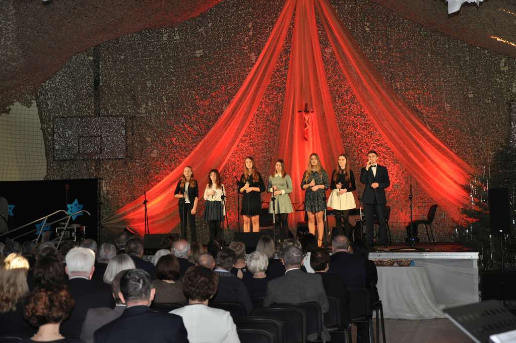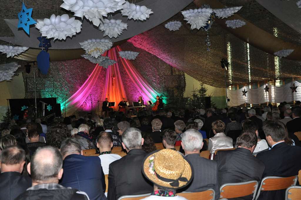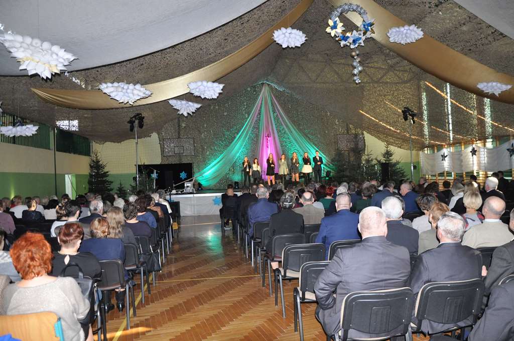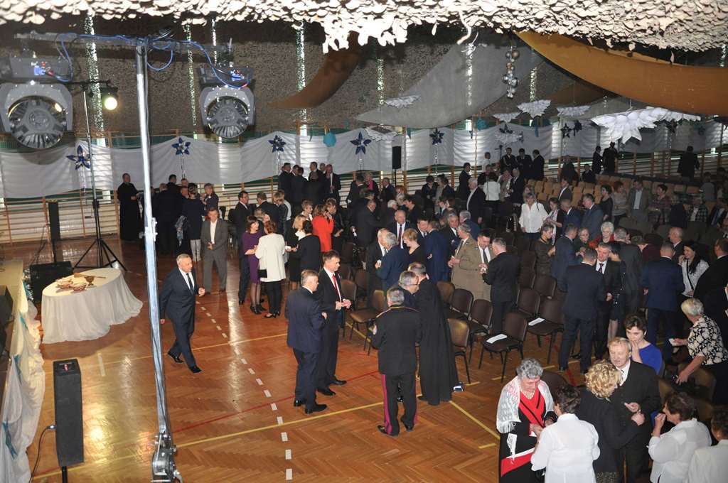 Wcześniej jednak miejsce miały okolicznościowe wystąpienia wójta Leszka Proskury, marszałka Krzysztofa Grabczuka, poseł Teresy Hałas, starosty Janusza Szpaka oraz odczytanie listu od poseł Agaty Borowiec. Następnie obecny na sali Wikariusz Biskupi ks. dr Tadeusz Pajurek poświęcił opłatek, którym „przełamali się” zebrani. A było to ponad 350 osób.