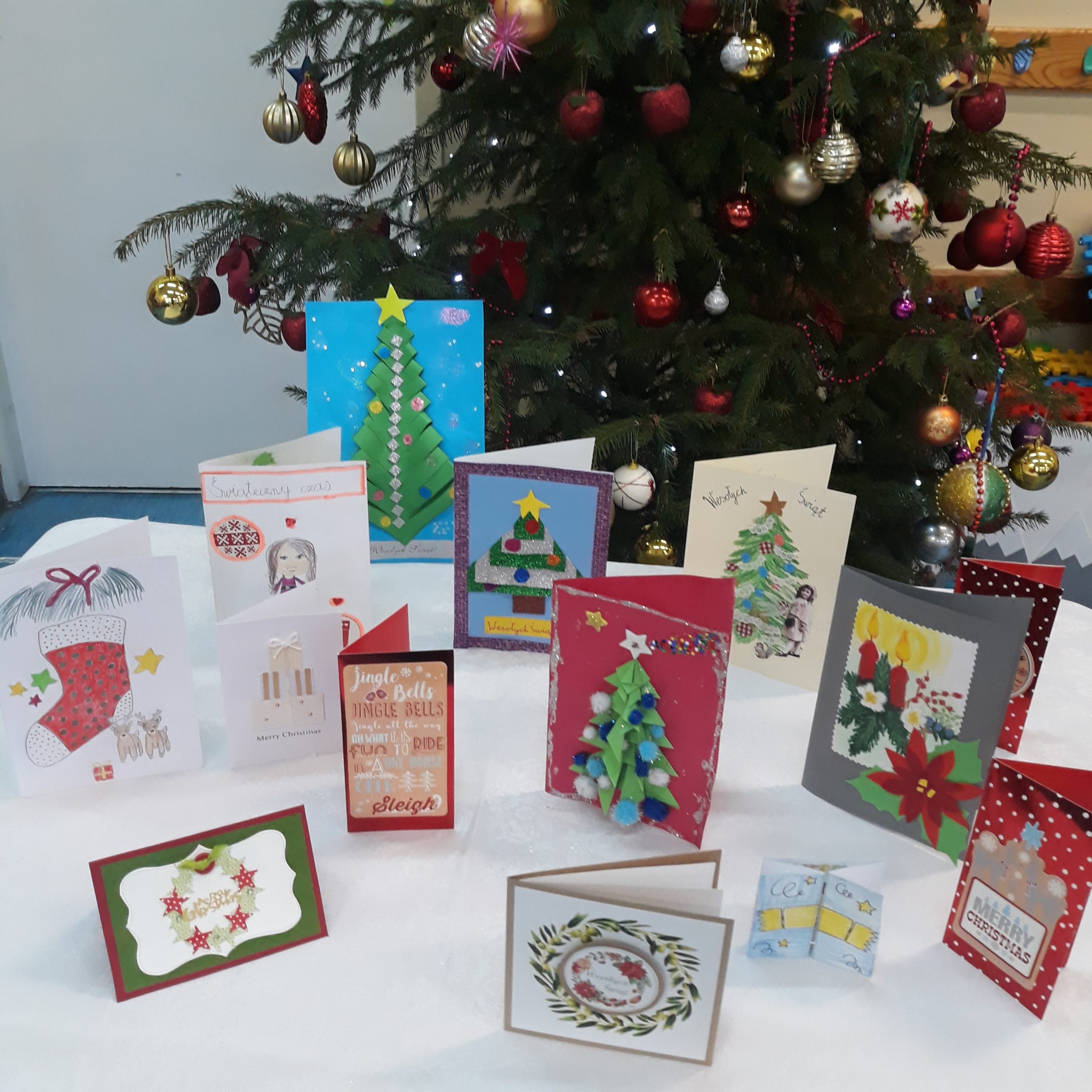 W związku z tym uczniowie z naszej szkoły przyłączyli się do akcji MEN „Razem na Święta”. Celem tej inicjatywy było zarówno zachęcenie uczniów do niesienia pomocy innym, jak również budowanie wspólnot i więzi międzypokoleniowych. Ze względu na ograniczenia wynikające ze stanu epidemii uczniowie przygotowali kartki dla Seniorów, których zdjęcia przysyłali online lub przynosili do specjalnie przygotowanej skrzynki. Oto wykonane karki:
