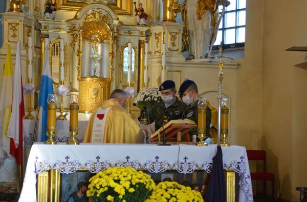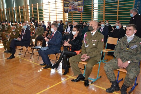 Reprezentujący kadetów Dominik Hawryluk odczytał wiersz Władysława Bełzy „Katechizm młodego Polaka”, którego frazy zbiorowo powtarzali jego koleżanki i koledzy z oddziału.